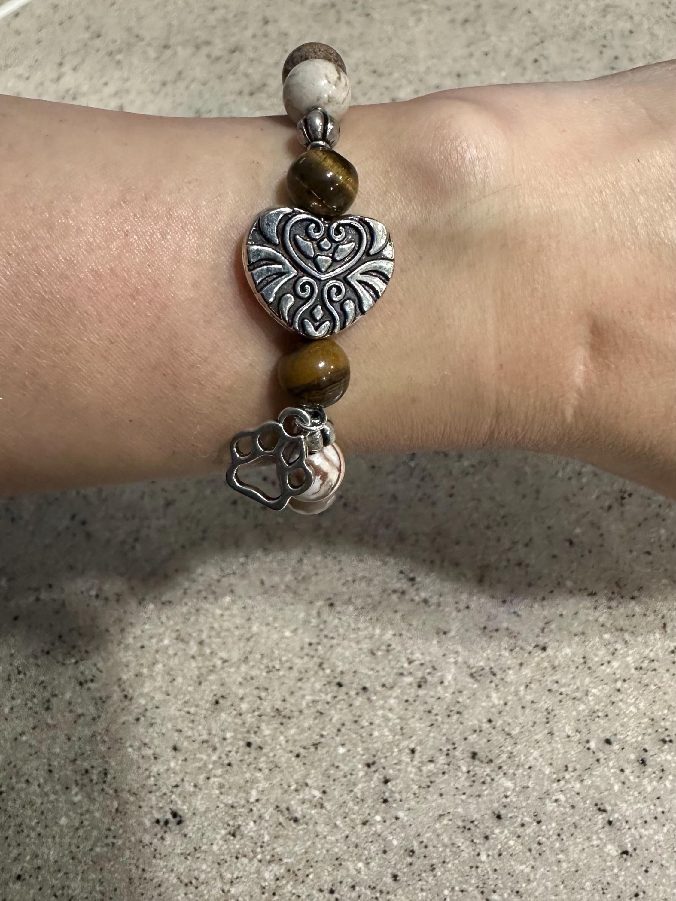 I adore this bracelet. Who can resist seeing a little silver paw dangling next to a funky silver heart? And the color variety of the beads are awesome. Another hip, “happy” bracelet for me...LOVE IT!!!